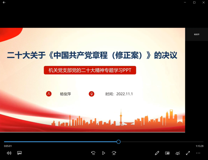 11月1日,隴神戎發(fā)機關(guān)黨支部以騰訊會議形式開展11月主題黨日活動,專題學習黨的二十大精神。