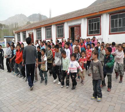后來(lái)的日子里,我們給孩子們組織召開(kāi)了化旦尖措小學(xué)的第一次運(yùn)動(dòng)會(huì)。清晨的冷風(fēng)冰凍了我們拿著粉筆畫(huà)跑道的雙手,而孩子們的主動(dòng)幫忙溫暖鼓舞了我們的士氣,我們克服了中途停電等種種困難在上午舉行完了個(gè)人組的比賽。孩子們踢毽子的靈活,跳繩的輕盈,跑步的飛快,比賽時(shí)的團(tuán)結(jié)……那一幕幕讓我第一次在那里想起了我的大學(xué),想到在前幾天我們校園里舉行的運(yùn)動(dòng)會(huì),雖然規(guī)模陣勢(shì)大不不同,但是每當(dāng)進(jìn)行曲響起、號(hào)令搶打響,我就會(huì)情不自禁地心潮澎湃。下午的時(shí)候,我們的團(tuán)體賽也井然有序的進(jìn)行著,大孩子給小孩子用藏語(yǔ)翻譯著我們說(shuō)的漢語(yǔ),小孩子用表情神態(tài)回應(yīng)著我們的要求。所有項(xiàng)目都結(jié)束了,頒獎(jiǎng)典禮上孩子的興奮依舊高漲,他們拿著我們從大學(xué)校園里募捐到的全新的文具和體育器材做的獎(jiǎng)品時(shí),笑得那么天真無(wú)邪,那么暖人心懷。