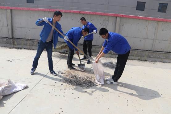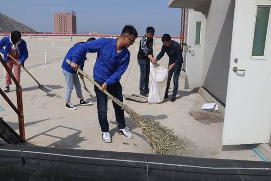 廠區(qū)樓頂?shù)哪嗤、石子、塑料等下雨天被雨水沖刷后,容易堵塞樓頂排水口,存在安全隱患。所以此次清理活動(dòng),主要針對(duì)樓頂環(huán)境衛(wèi)生、衛(wèi)生死角進(jìn)行了集中清理。活動(dòng)開始后團(tuán)總支將已準(zhǔn)備好的鐵鍬、簸箕、掃帚等工具分發(fā)到各小組,所有人登上樓頂,發(fā)揮不怕苦、臟、累的精神,積極地清理石子、泥土、雜物等垃圾。利用廢棄的編織袋來裝運(yùn),即節(jié)省了物資,又能二次利用。