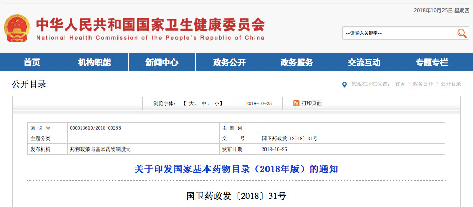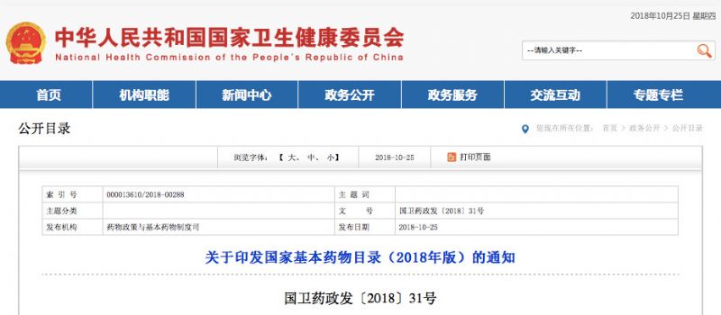 2018版基藥目錄正式公布(附名單)