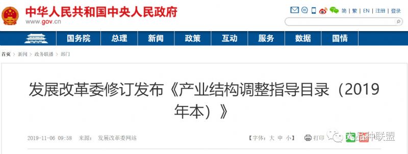 昨日(11月6日),中國政府網(wǎng)公布了由國家發(fā)改委發(fā)布的《中華人民共和國國家發(fā)展和改革委員會令》(第92號),《產(chǎn)業(yè)結(jié)構(gòu)調(diào)整指導(dǎo)目錄(2019年本)》(簡稱《產(chǎn)業(yè)目錄》)。
