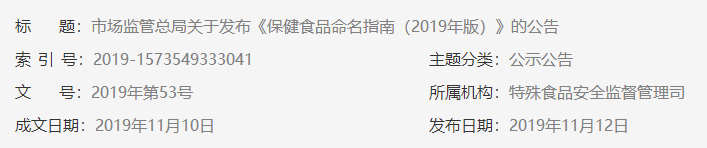 市場監(jiān)管總局發(fā)布《保健食品命名指南(2019年版)》