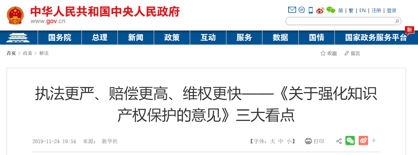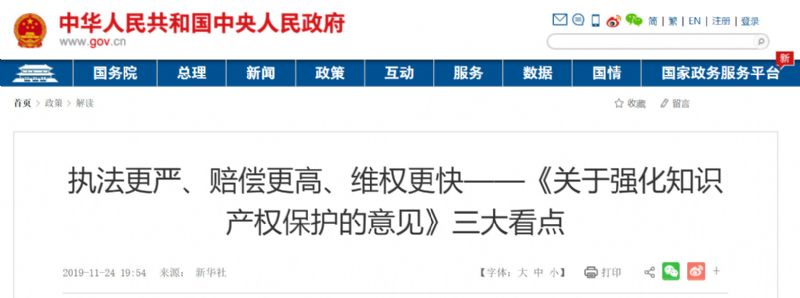 新華社北京11月24日電 題:執(zhí)法更嚴、賠償更高、維權(quán)更快——《關(guān)于強化知識產(chǎn)權(quán)保護的意見》三大看點
