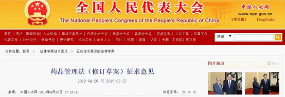 4月26日下午,中國人大網(wǎng)發(fā)布“藥品管理法(修訂草案)征求意見”,征求意見日期為4月26日-5月25日。