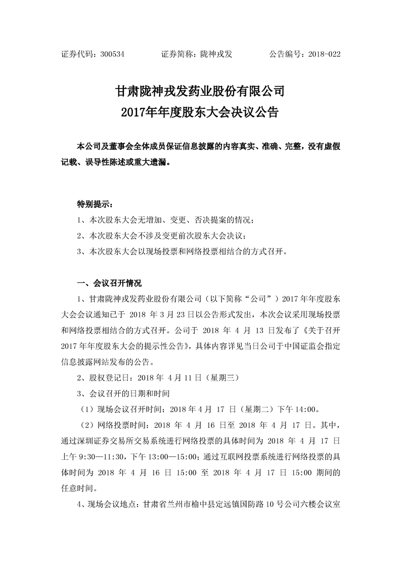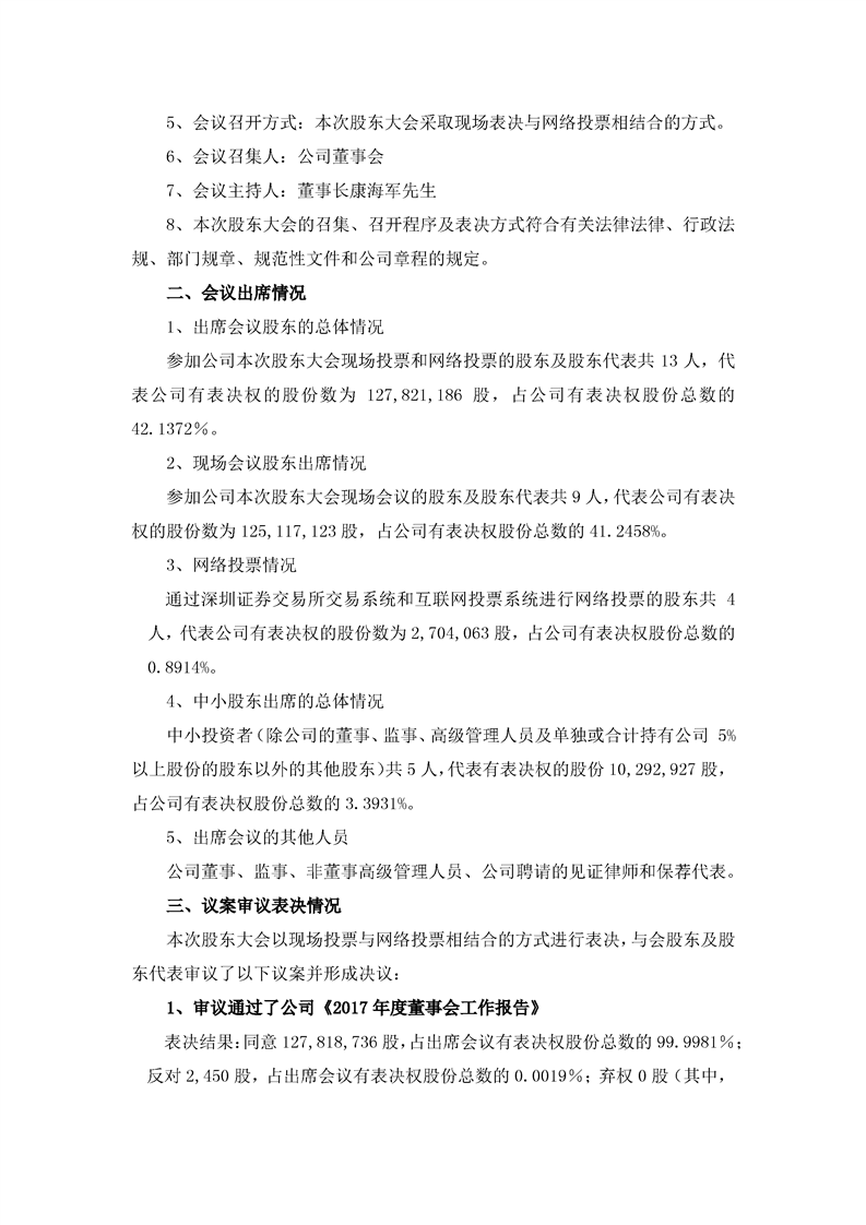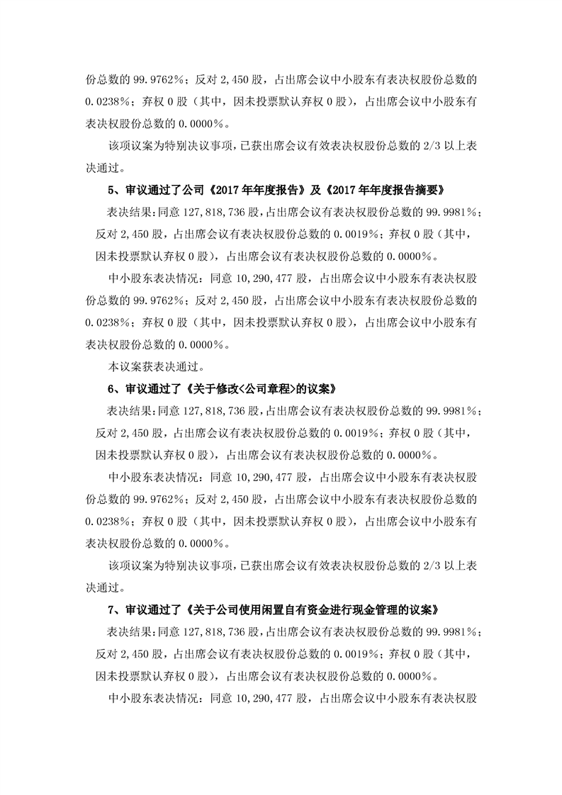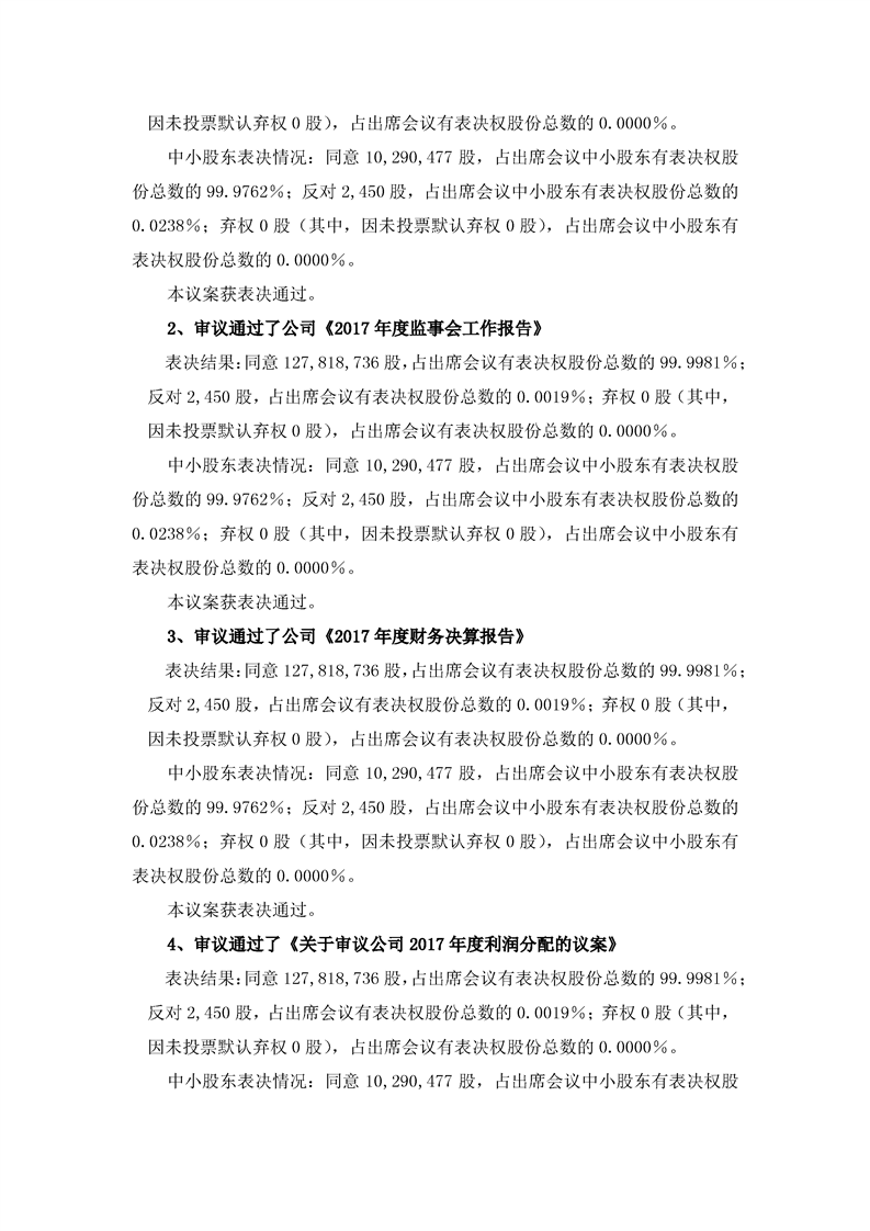 2017年年度股東大會(huì)決議公告