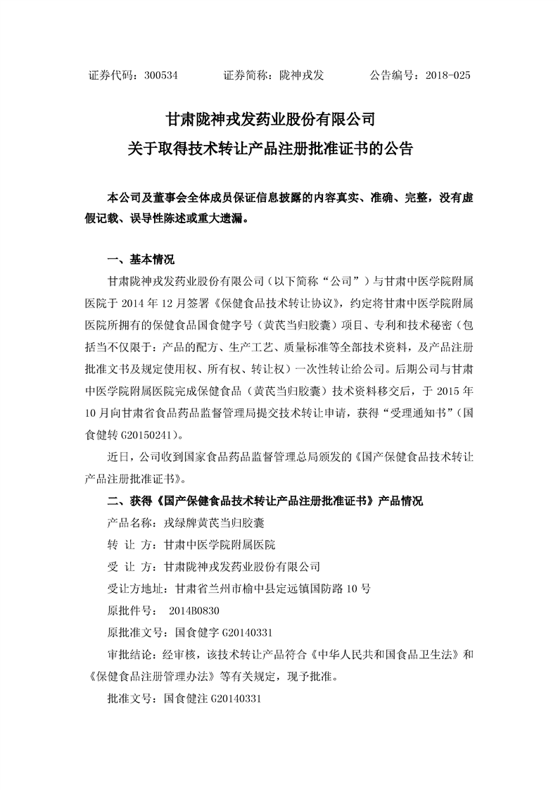 關(guān)于取得技術(shù)轉(zhuǎn)讓產(chǎn)品注冊(cè)批準(zhǔn)證書(shū)的公告