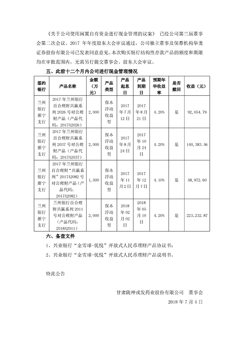 關(guān)于使用閑置自有資金進(jìn)行現(xiàn)金管理的進(jìn)展公告