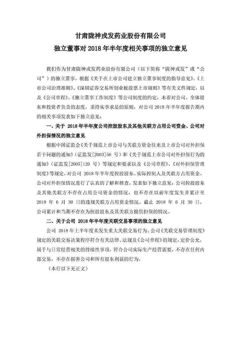 獨(dú)立董事對 2018 年半年度相關(guān)事項(xiàng)的獨(dú)立意見