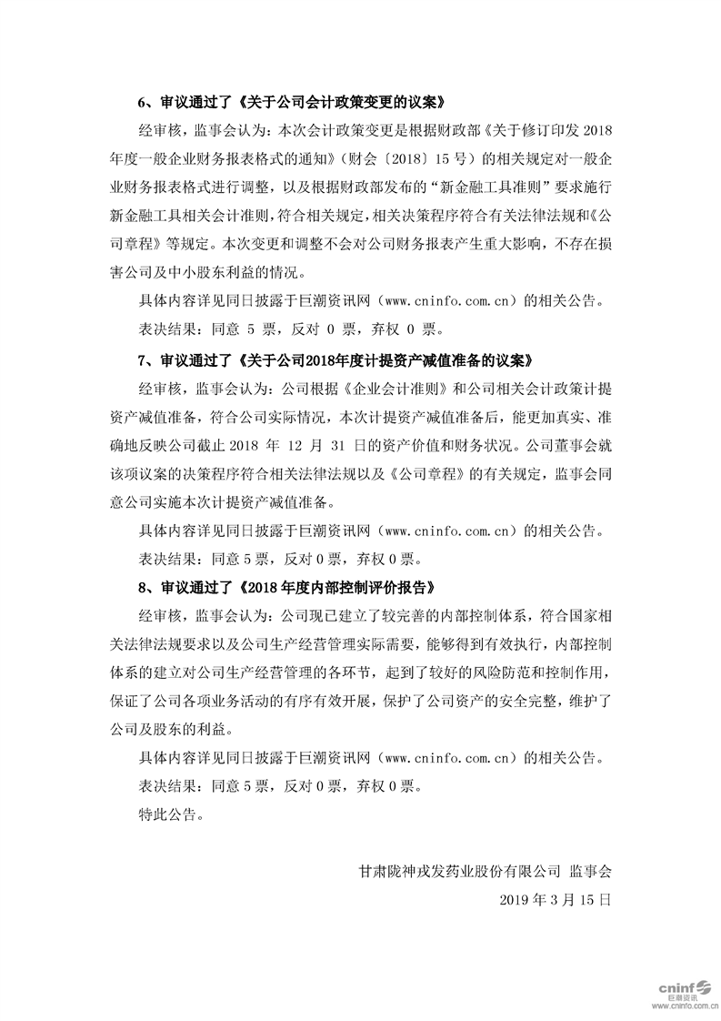 第三屆監(jiān)事會第六次會議決議公告