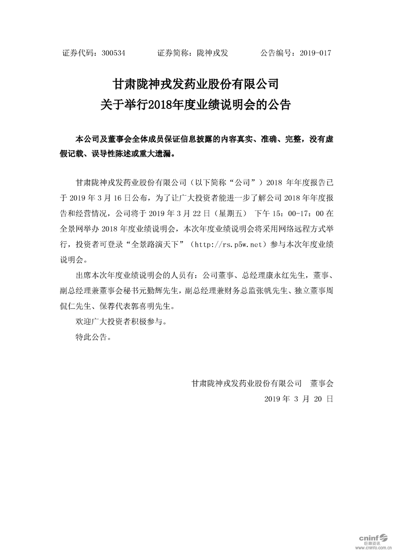 關(guān)于舉行2018年度業(yè)績說明會的公告