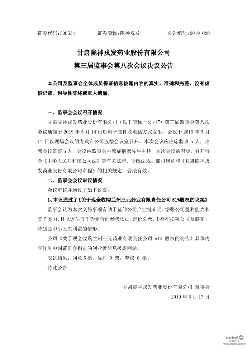 第三屆監(jiān)事會(huì)第八次會(huì)議決議公告