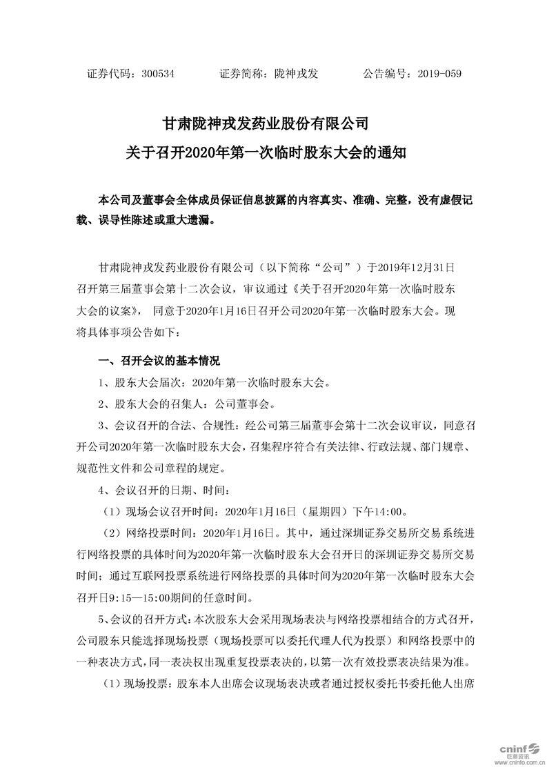 關(guān)于召開2020年第一次臨時股東大會的通知