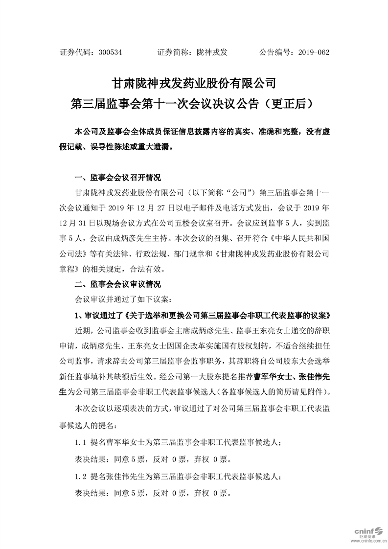 第三屆監(jiān)事會(huì)第十一次會(huì)議決議公告(更新后)
