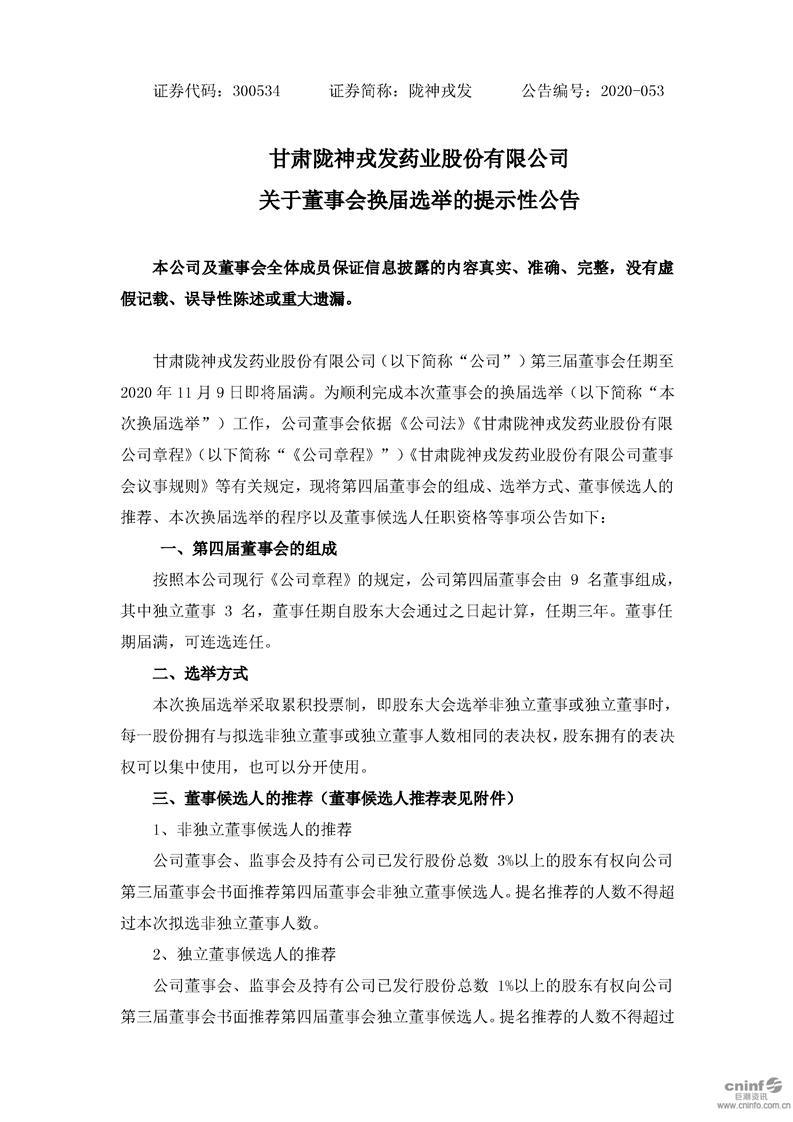 關(guān)于董事會(huì)換屆選舉的提示性公告