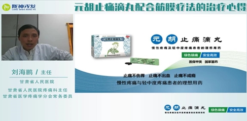 交流會第四場邀請到甘肅省醫(yī)學(xué)疼痛學(xué)會分會常務(wù)委員、甘肅省人民醫(yī)院疼痛科副主任劉海鵬教授,劉主任將臨床中筋膜療法與元胡止痛滴丸配合使用的治療方法及治療心得進(jìn)行一一講解。