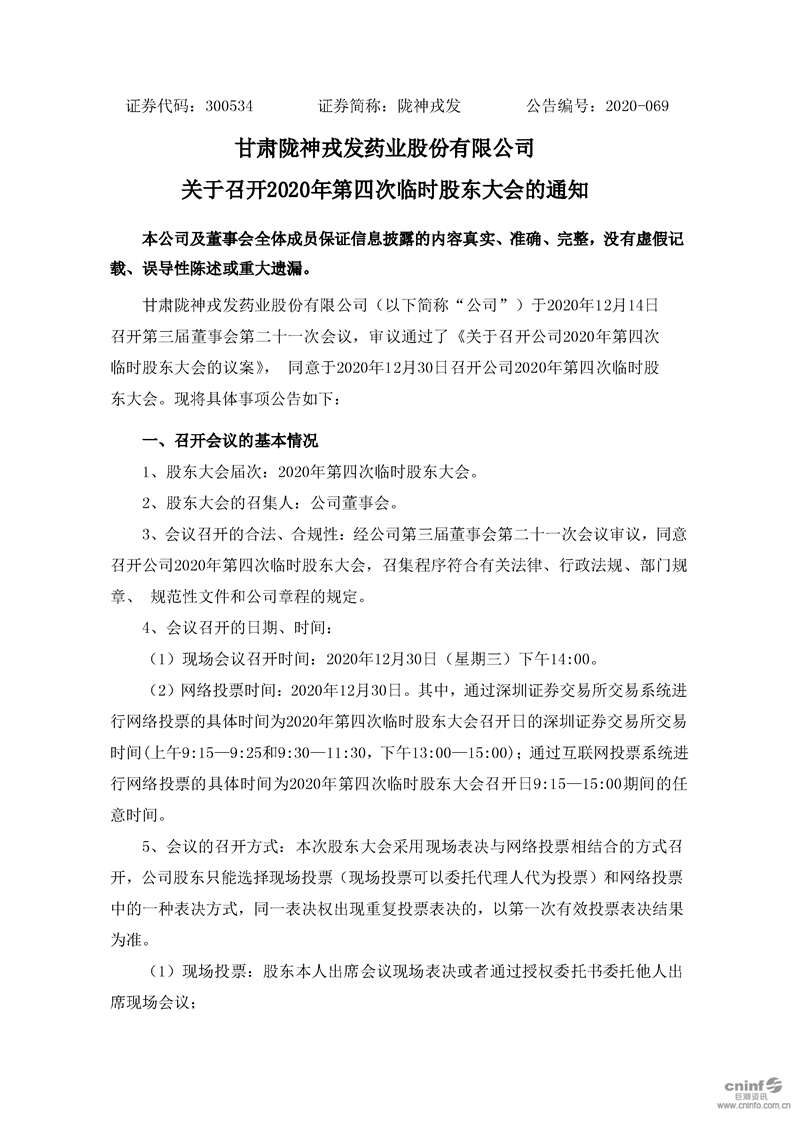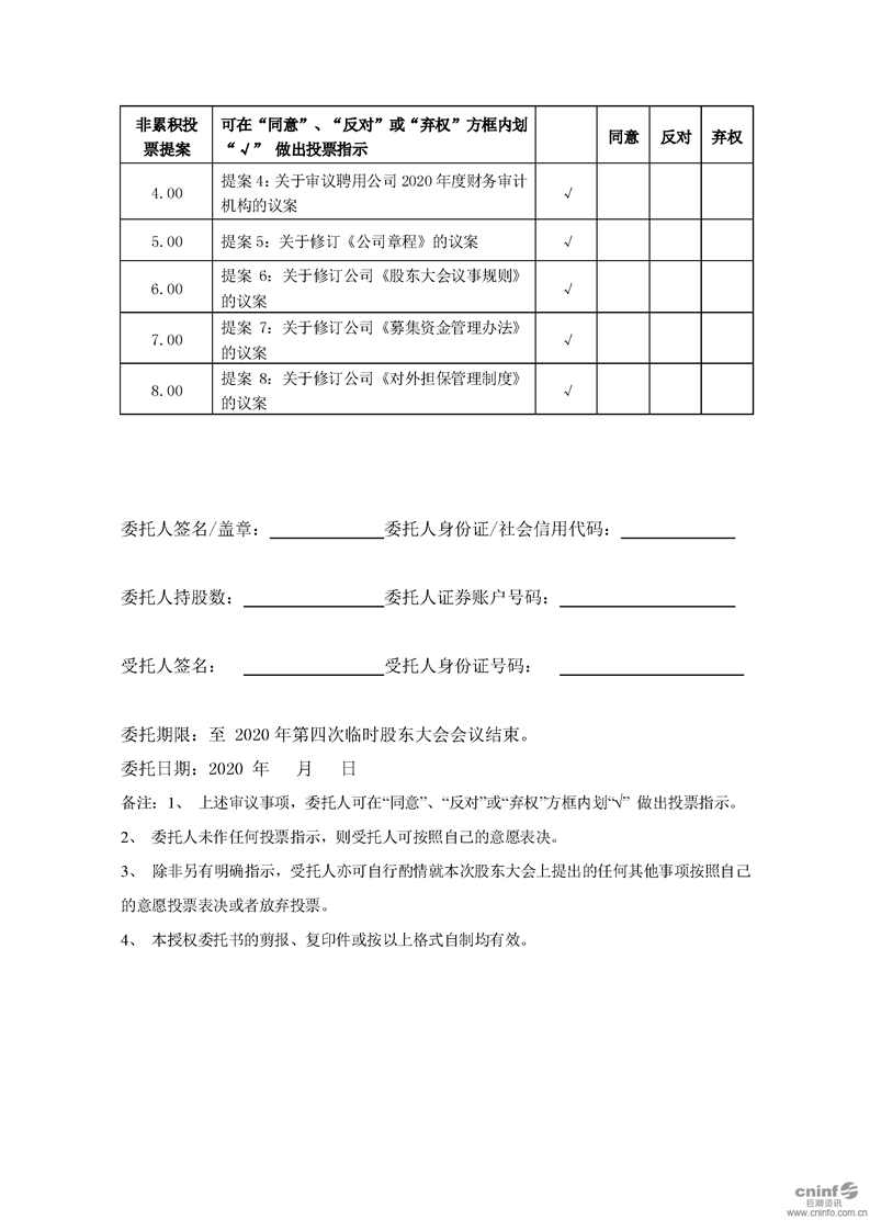 關(guān)于召開(kāi)2020年第四次臨時(shí)股東大會(huì)的通知
