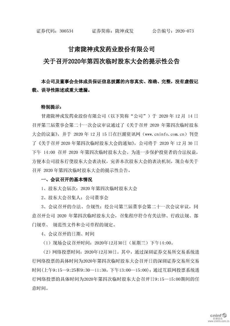 關(guān)于召開(kāi)2020年第四次臨時(shí)股東大會(huì)的提示性公告