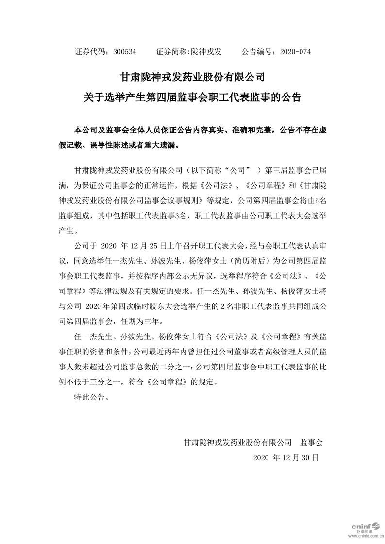 關于選舉產(chǎn)生第四屆監(jiān)事會職工代表監(jiān)事的公告