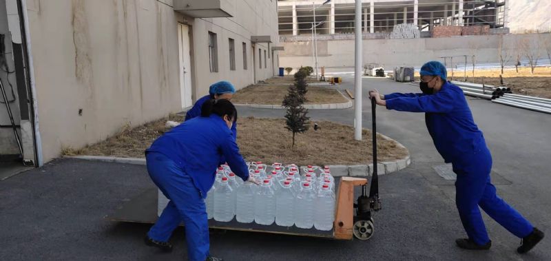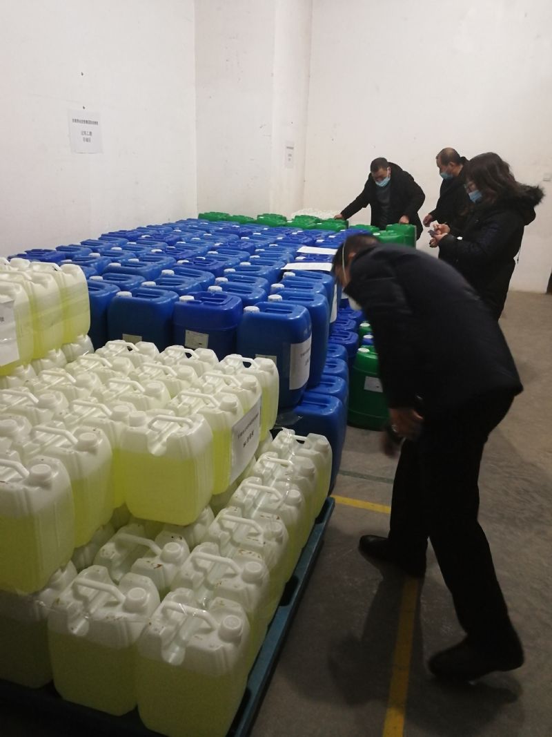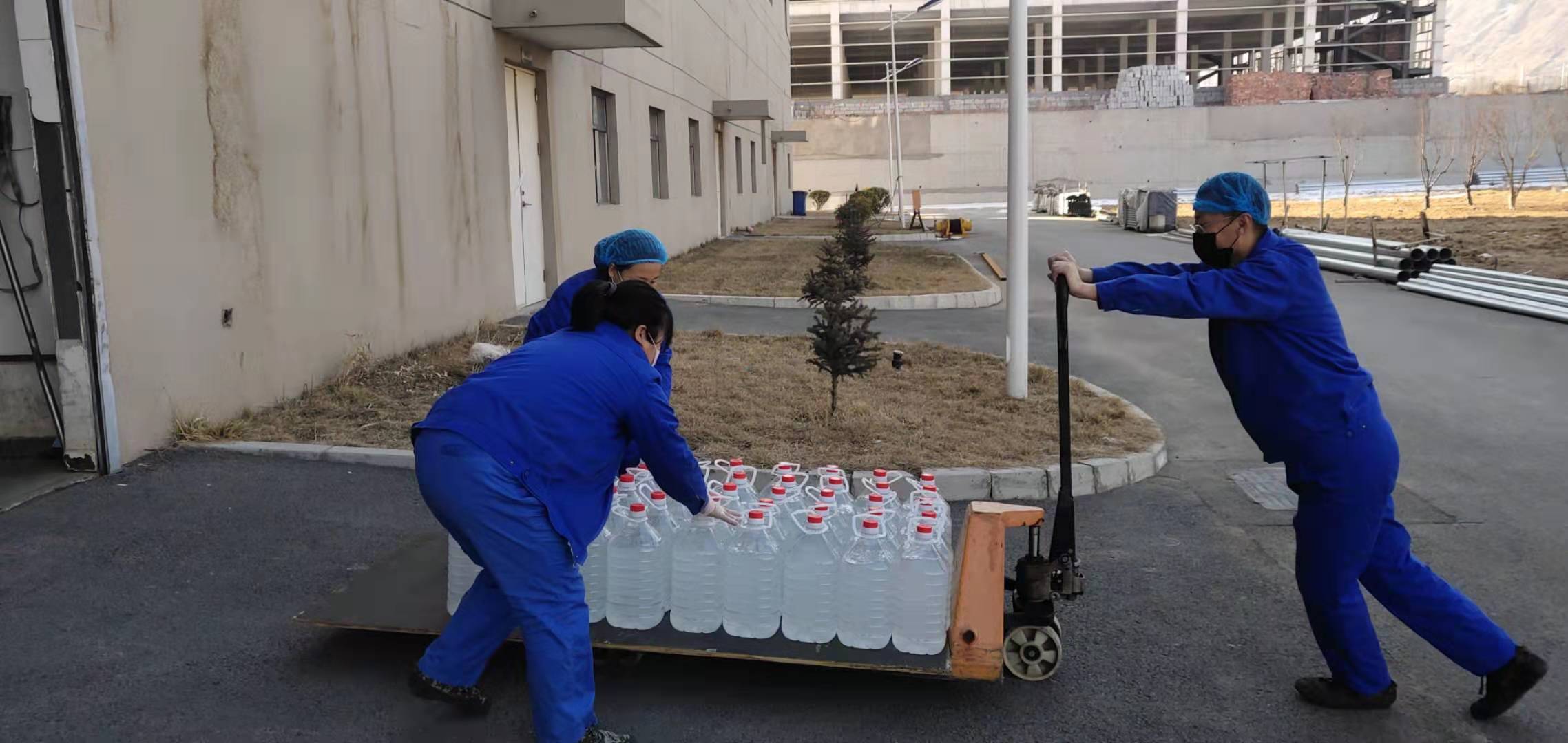 隴神戎發(fā)生產(chǎn)一線(xiàn)員工緊急配制75%酒精,用于疫情防控