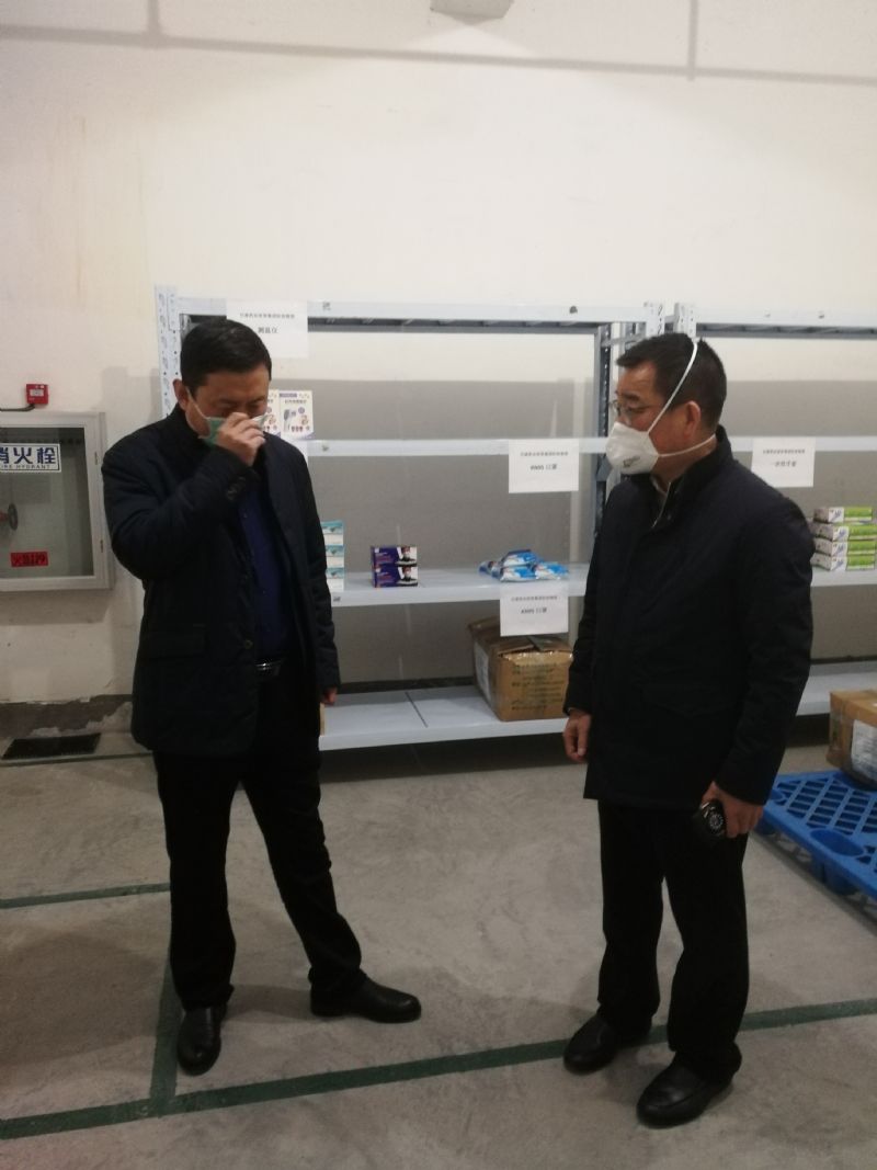 甘肅藥業(yè)集團(tuán)黨委委員、副總經(jīng)理兼隴神戎發(fā)董事長(zhǎng)康海軍視察三元藥業(yè)防控物資儲(chǔ)備消毒用品