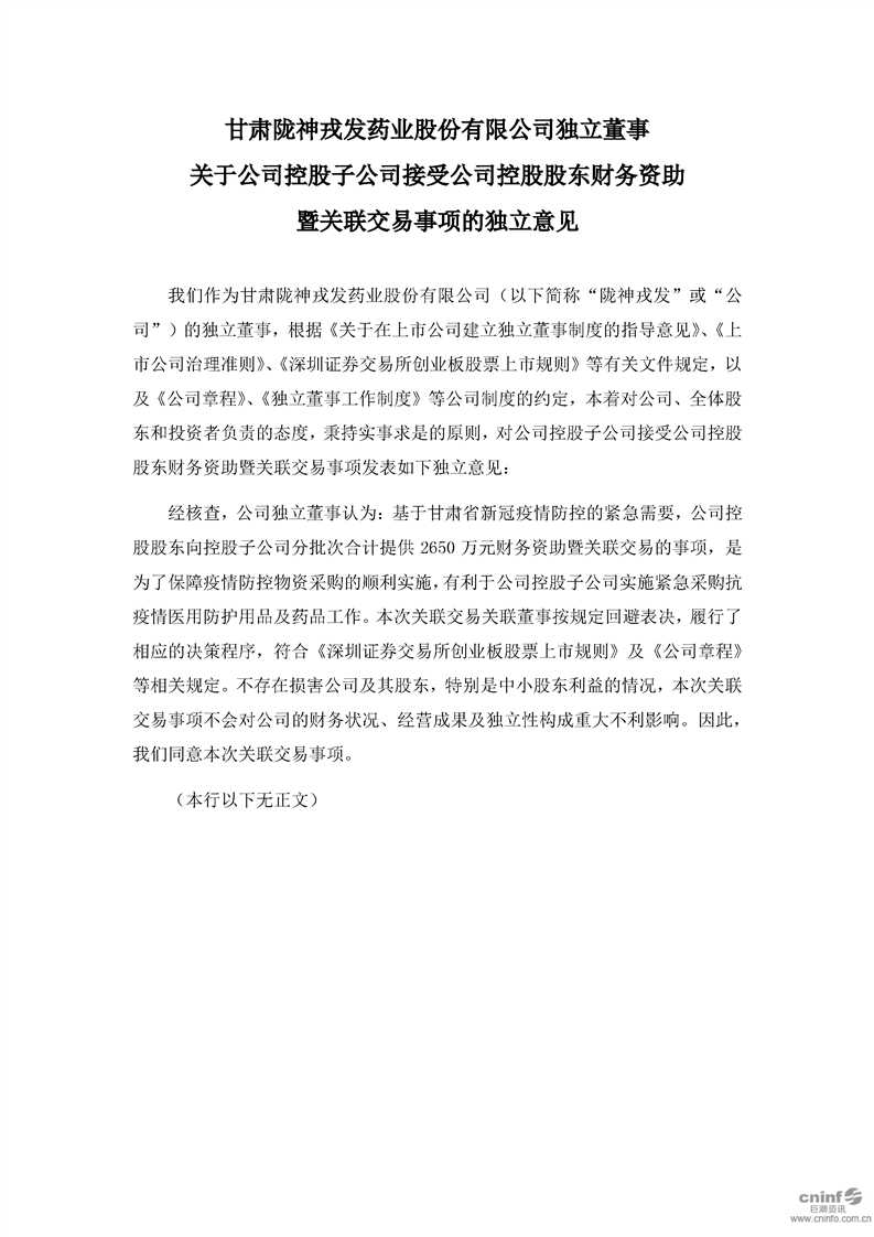 獨立董事關于公司控股子公司接受公司控股股東財務資助暨關聯(lián)交易事項的獨立意見