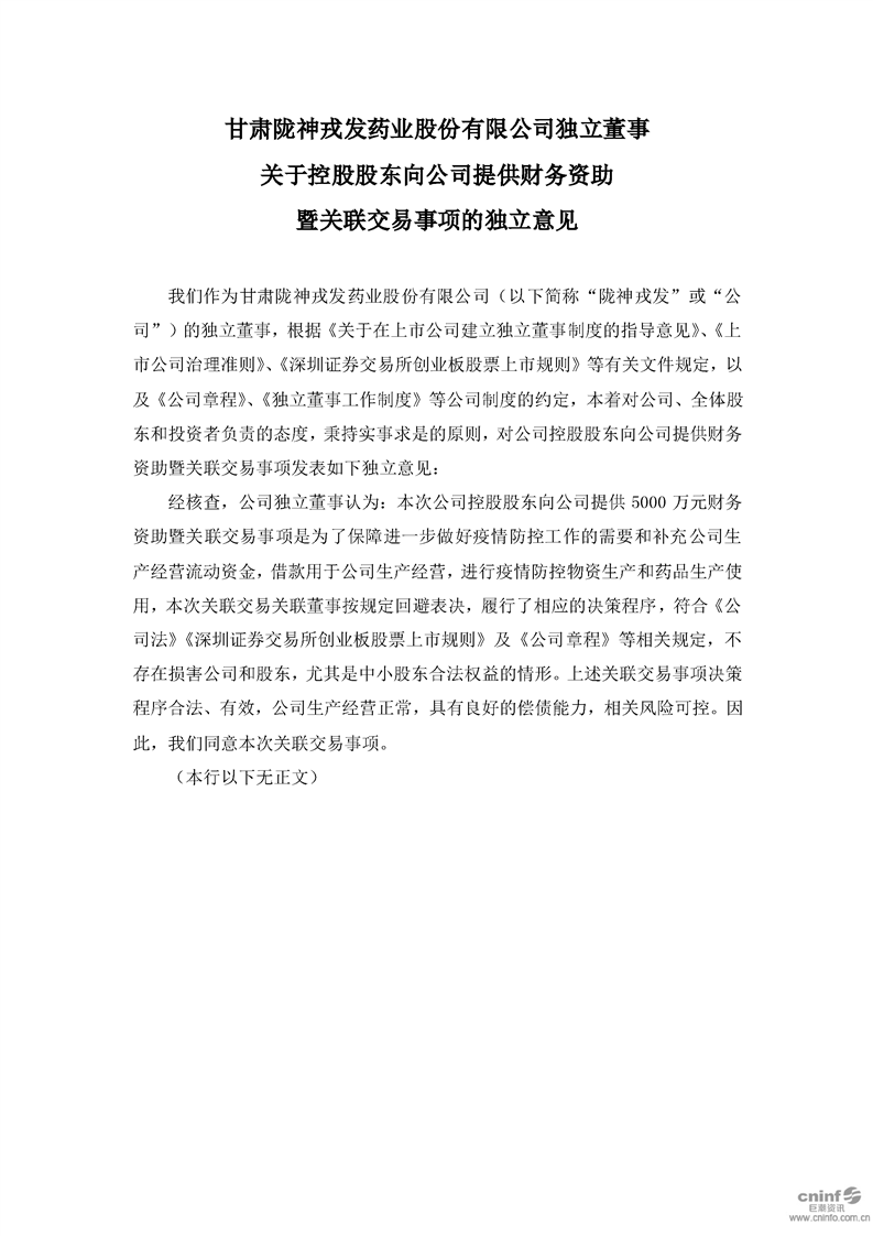 獨立董事關(guān)于控股股東向公司提供財務(wù)資助暨關(guān)聯(lián)交易事項的獨立意見