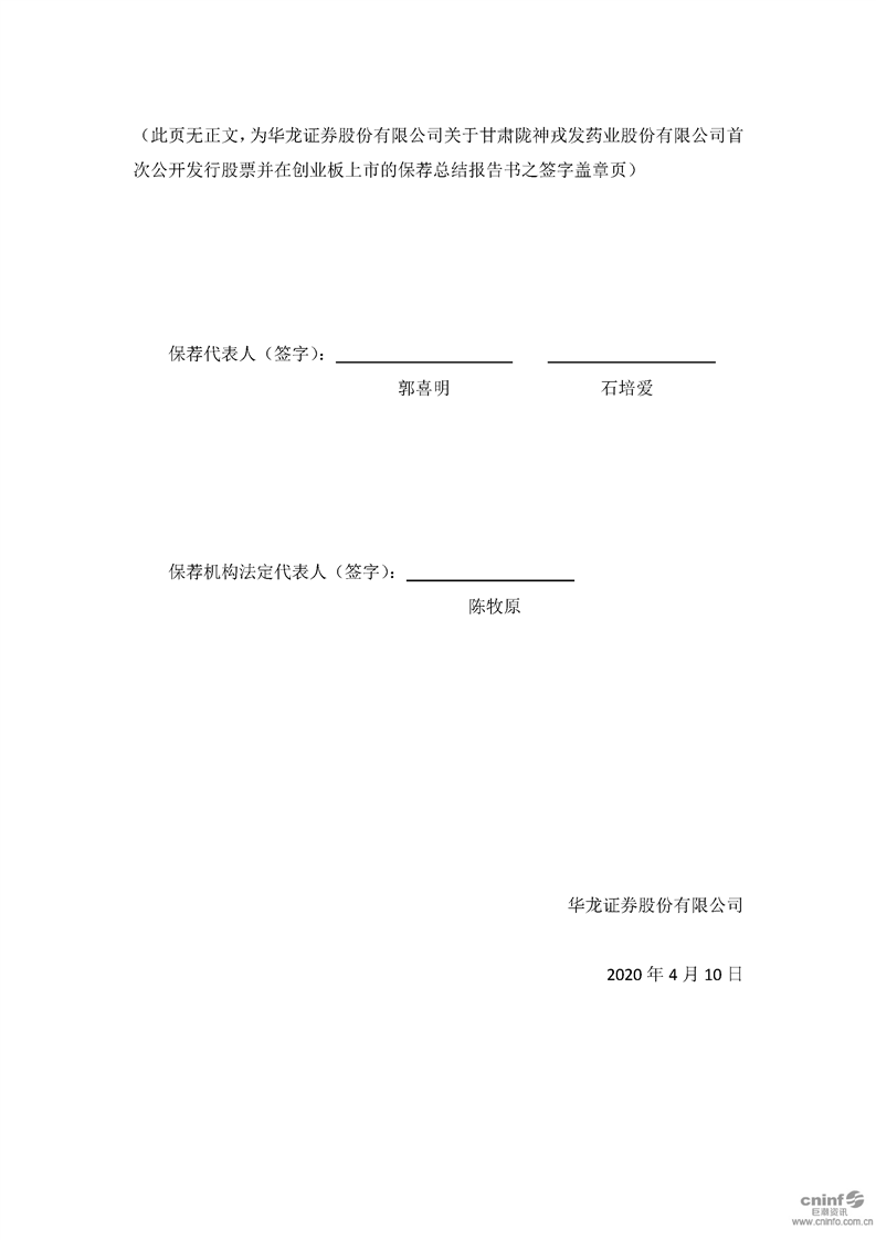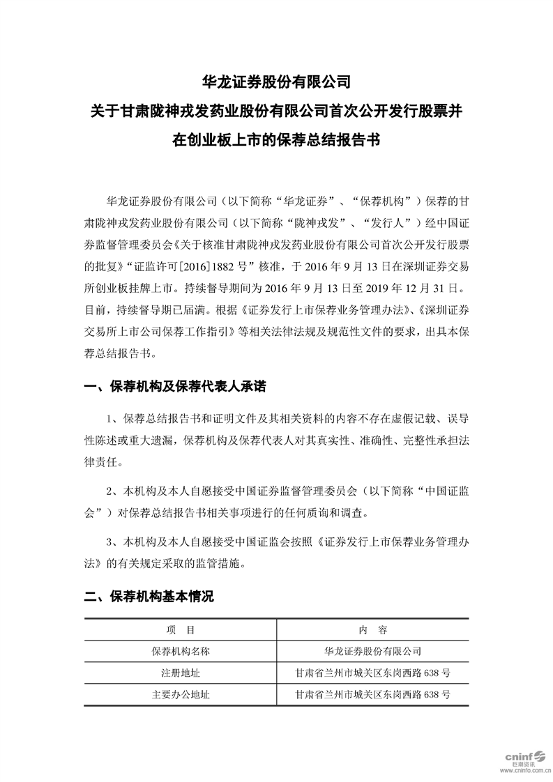 華龍證券股份有限公司關(guān)于公司首次公開發(fā)行股票并在創(chuàng)業(yè)板上市的保薦總結(jié)報告書
