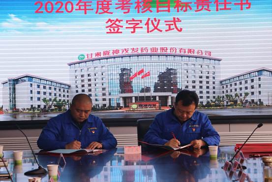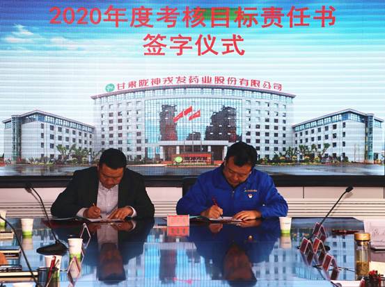 會議中目標責任書的簽訂將此次會議推向了高潮。公司總經(jīng)理康永紅分別與后勤服務部、甘肅新絲路公司和蘭州三元藥業(yè)公司負責人簽訂了2020年度經(jīng)營目標責任書。目標責任書的簽訂將全年的工作任務目標落到了實處,向公司業(yè)務部門傳導了壓力,進一步營造了“責任到人、獎優(yōu)罰劣”的良好氛圍,增強了真抓實干的信心。