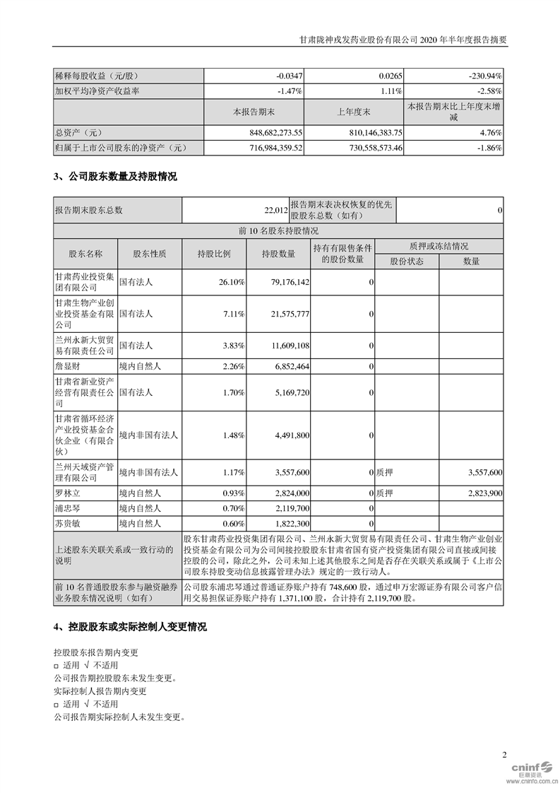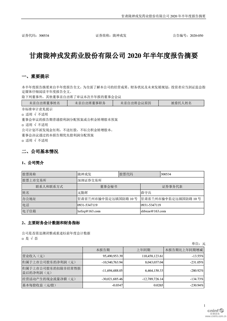 2020年半年度報(bào)告摘要