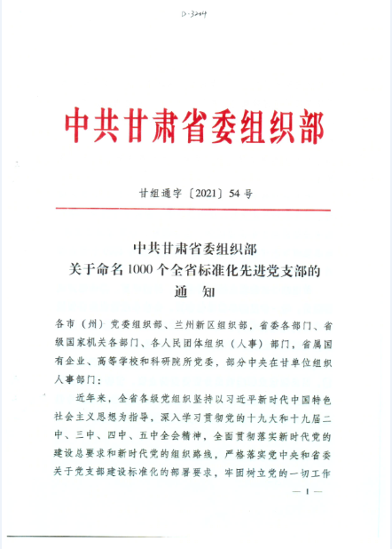 熱烈祝賀隴神戎發(fā)生產(chǎn)黨支部榮獲“全省標準化先進黨支部”