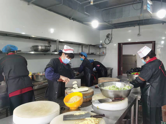 作為公司防疫戰(zhàn)疫的根據(jù)地,職工食堂責(zé)任重大。疫情發(fā)生之際,為了嚴(yán)格管控疫情發(fā)生、蔓延,后勤服務(wù)部部長(zhǎng)潘軍帶病對(duì)職工食堂衛(wèi)生安全,消毒措施執(zhí)行,實(shí)行分餐制飲食等方面積極應(yīng)對(duì),想方設(shè)法保障三餐正常,千方百計(jì)提高伙食質(zhì)量,員工們對(duì)于食堂工作給予一致好評(píng)。