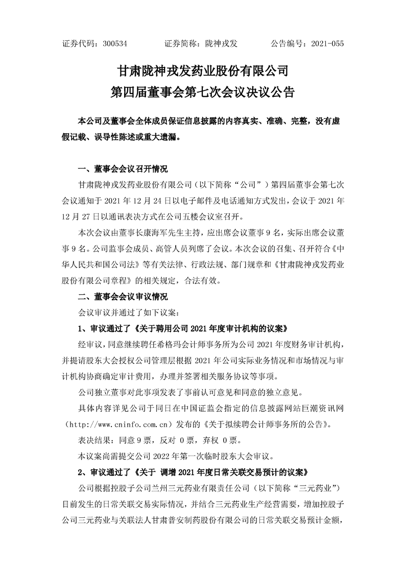第四屆董事會(huì)第七次會(huì)議決議公告