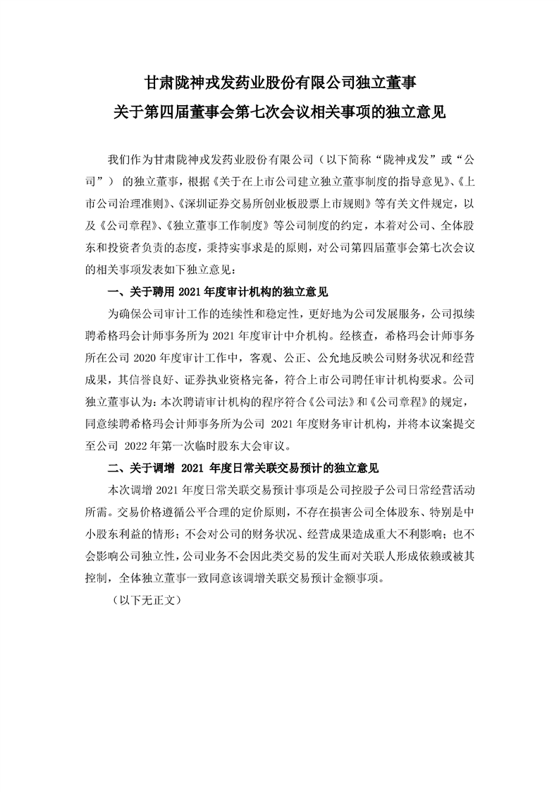 獨(dú)立董事關(guān)于第四屆董事會(huì)第七次會(huì)議相關(guān)事項(xiàng)的獨(dú)立意見(jiàn)