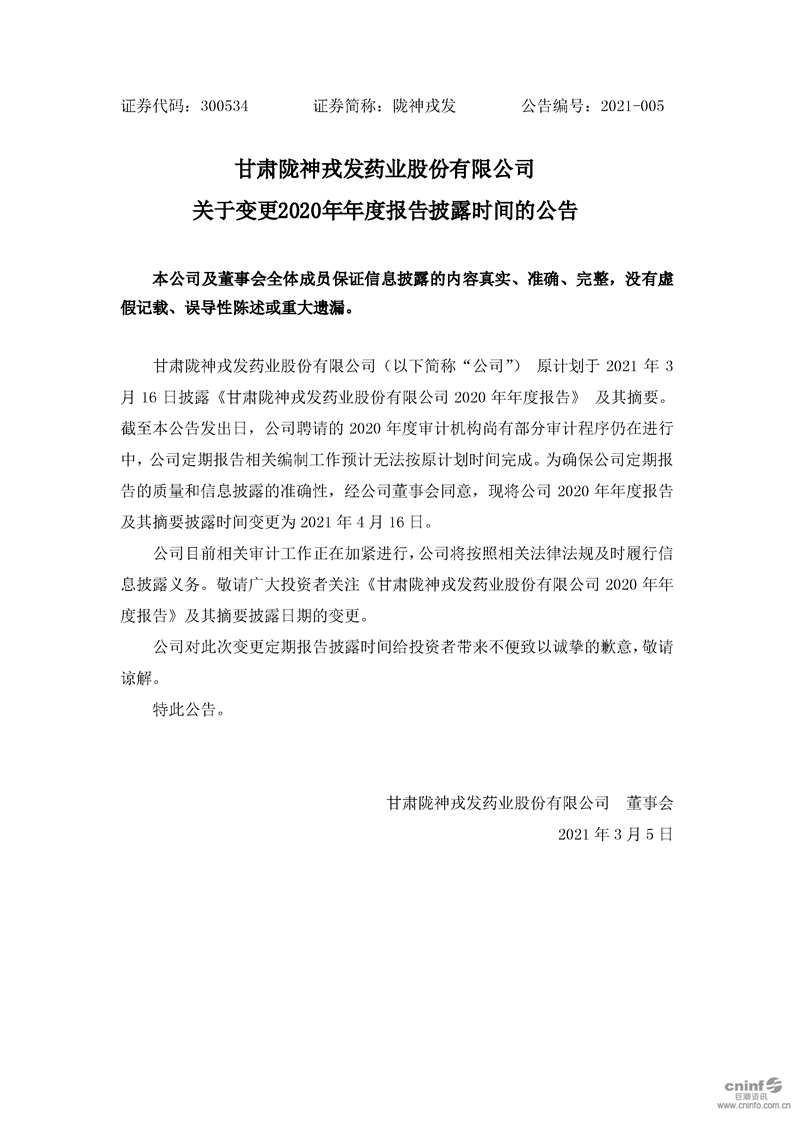 關(guān)于變更2020年年度報(bào)告披露時(shí)間的公告