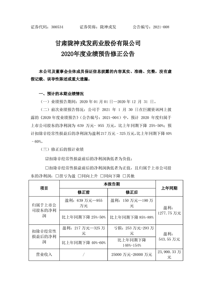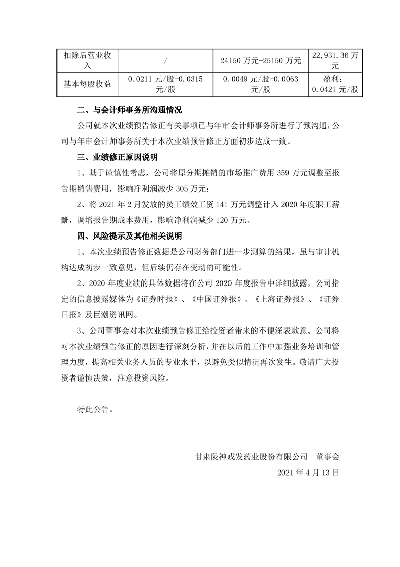 2020年度業(yè)績預(yù)告修正公告