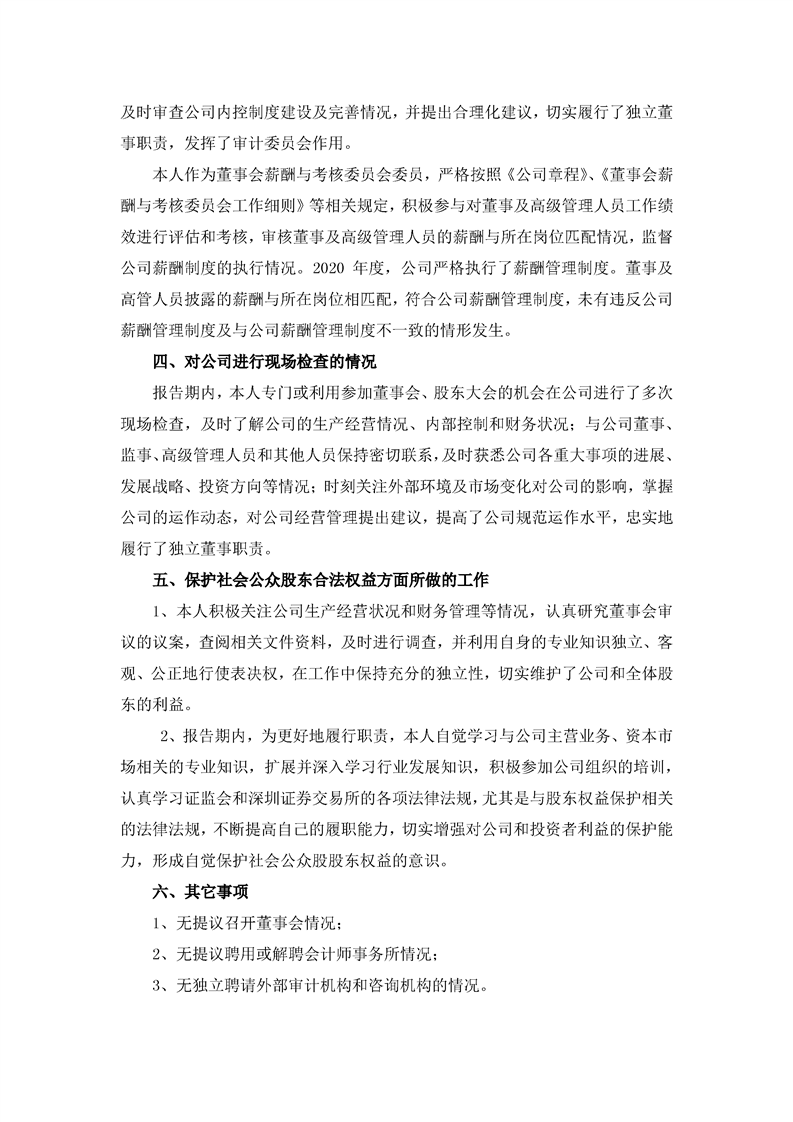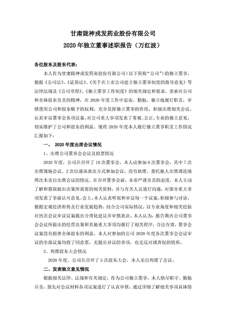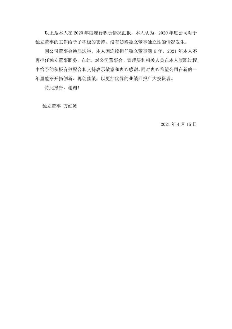2020年獨(dú)立董事述職報告(萬紅波)
