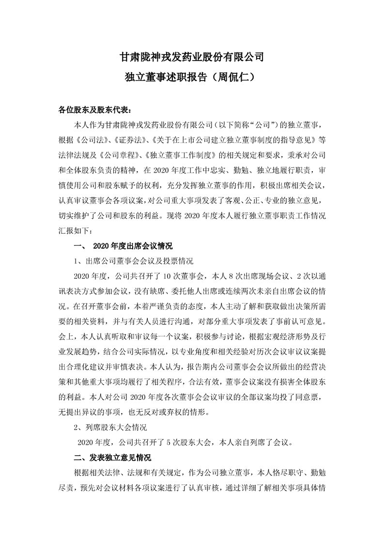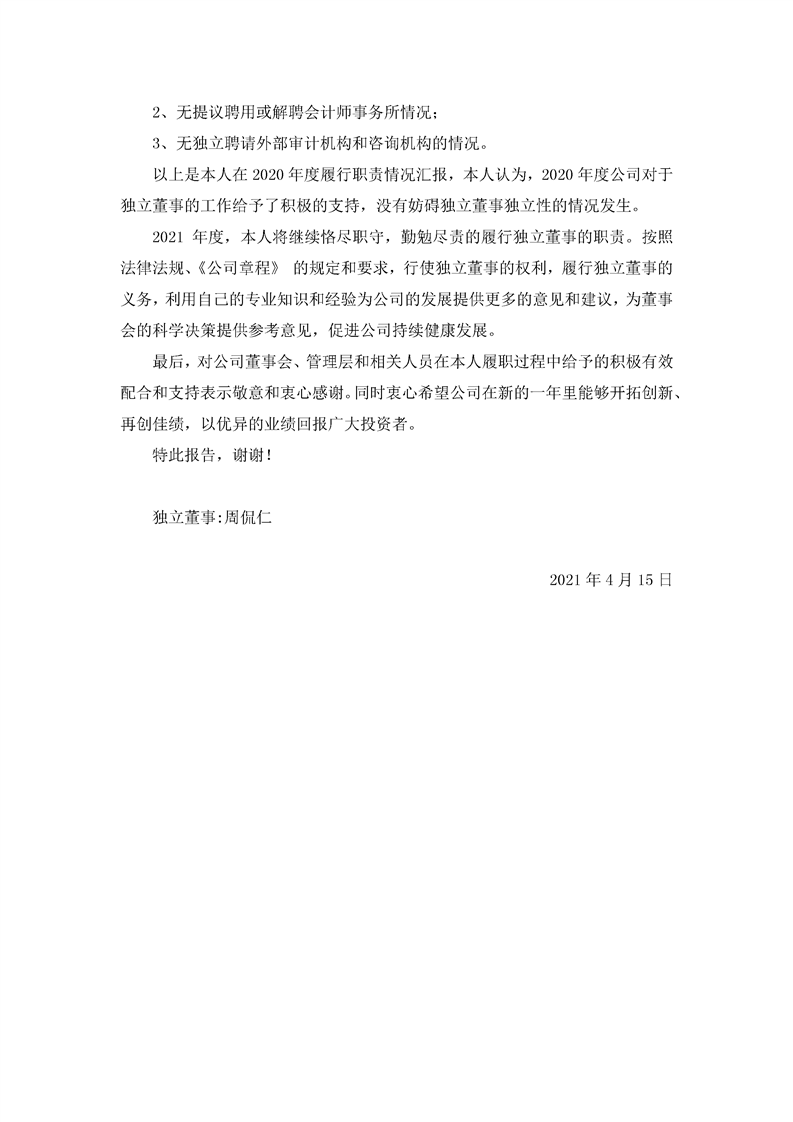 2020年獨(dú)立董事述職報(bào)告(周侃仁)