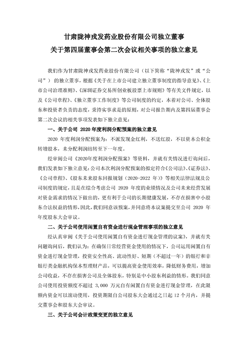 獨立董事關于第四屆董事會第二次會議相關事項的獨立意見