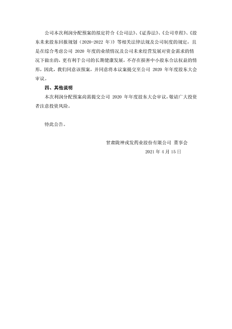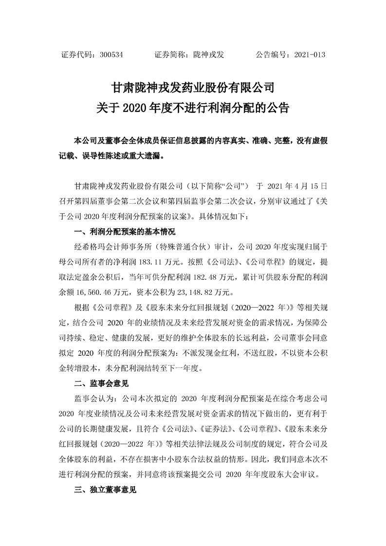 關(guān)于2020年度不進行利潤分配的公告