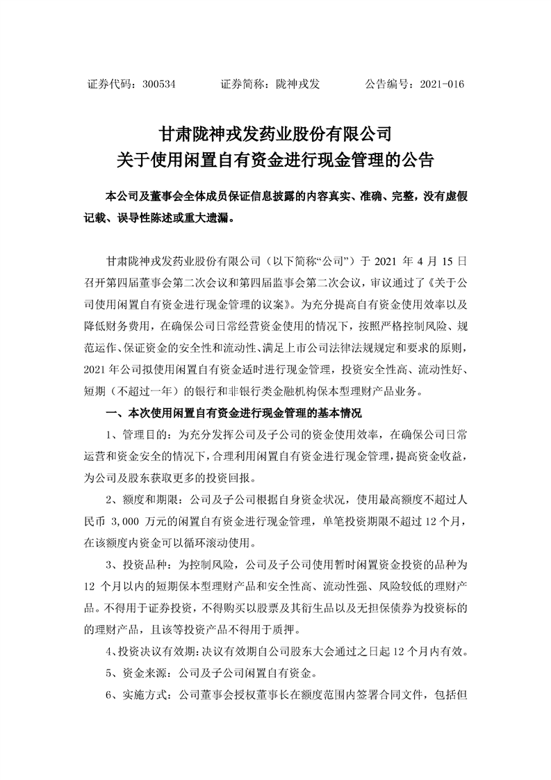 關(guān)于使用閑置自有資金進(jìn)行現(xiàn)金管理的公告