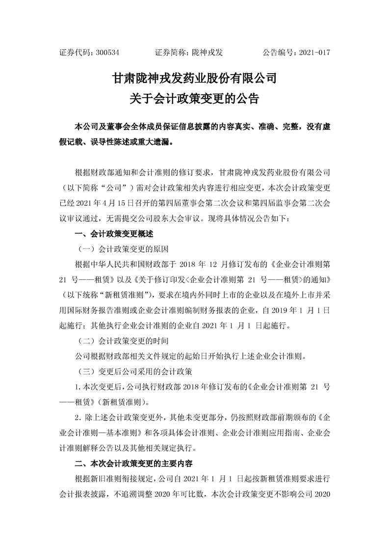 關(guān)于會計(jì)政策變更的公告