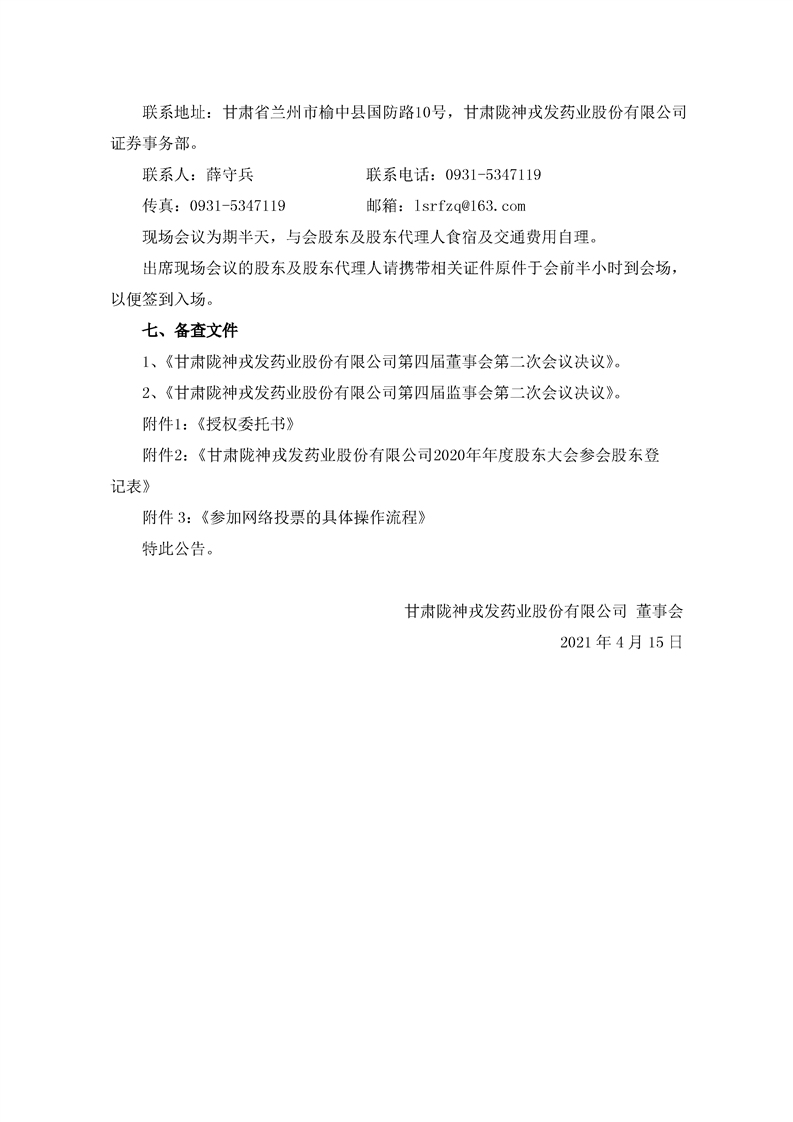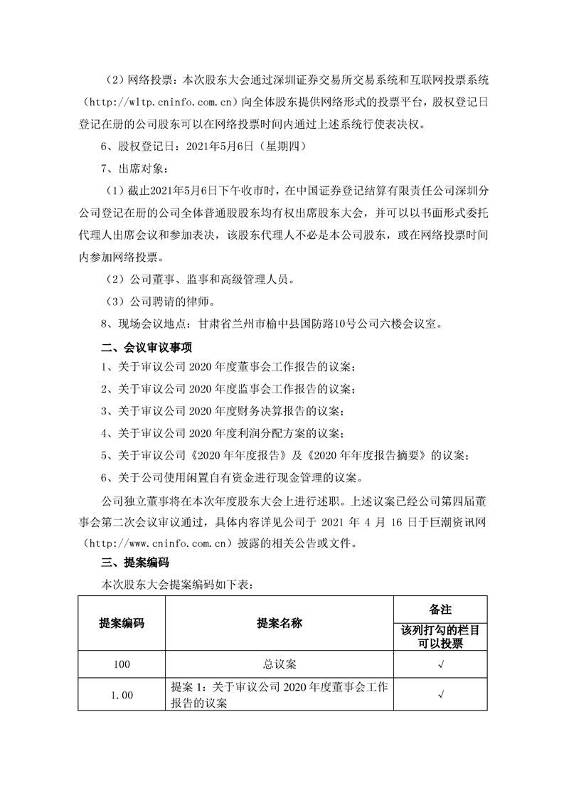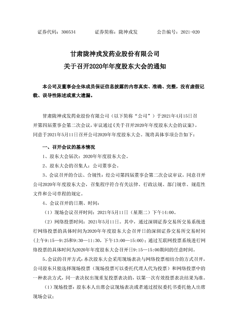 關(guān)于召開2020年年度股東大會(huì)的通知
