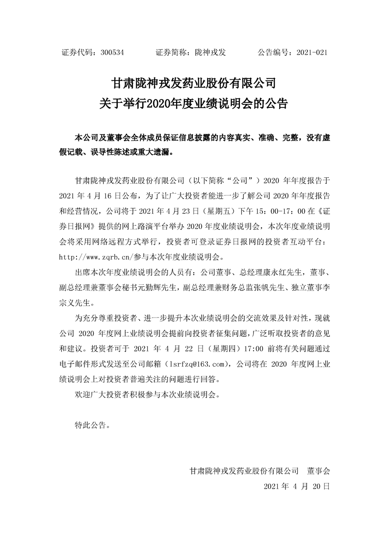關(guān)于舉行2020年度業(yè)績(jī)說(shuō)明會(huì)的公告