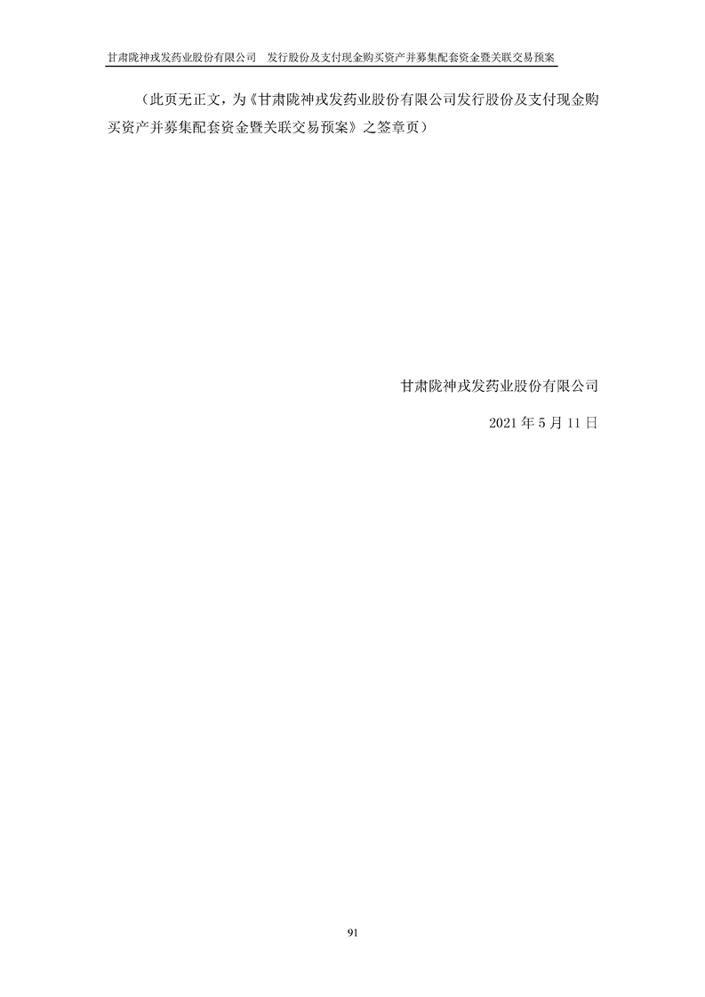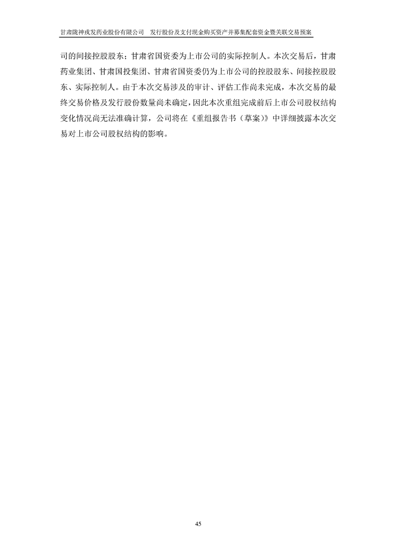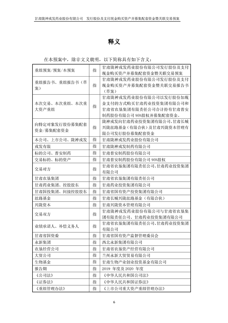 甘肅隴神戎發(fā)藥業(yè)股份有限公司發(fā)行股份及支付現(xiàn)金購買資產(chǎn)并募集配套資金暨關(guān)聯(lián)交易預(yù)案