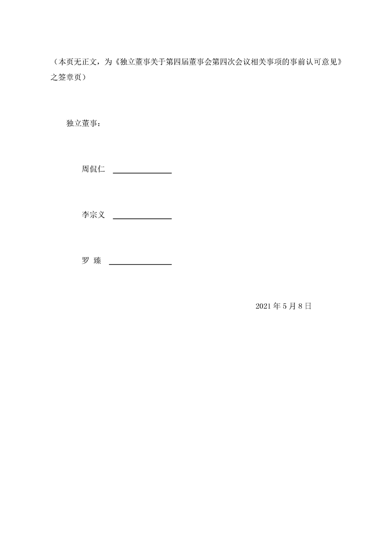 獨(dú)立董事關(guān)于第四屆董事會(huì)第四次會(huì)議相關(guān)事項(xiàng)的事前認(rèn)可的意見
