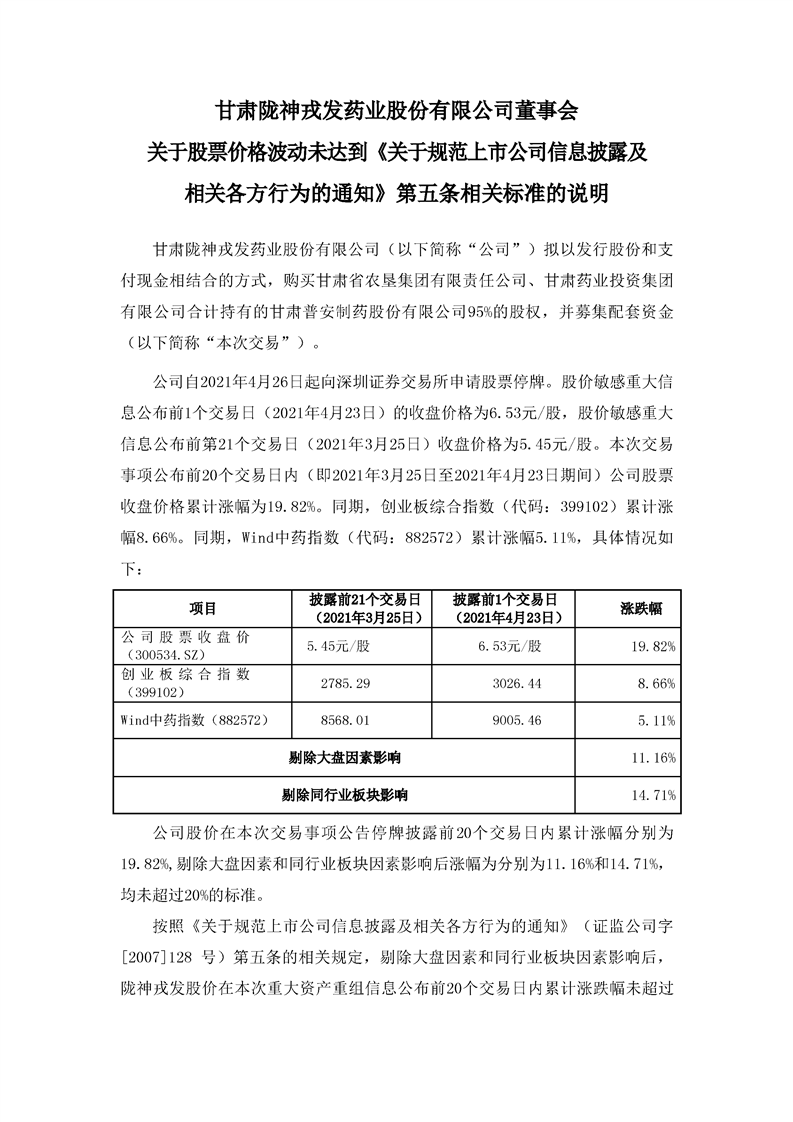董事會(huì)關(guān)于股票價(jià)格波動(dòng)未達(dá)到《關(guān)于規(guī)范上市公司信息披露及相關(guān)各方行為的通知》第五條相關(guān)標(biāo)準(zhǔn)的說(shuō)明