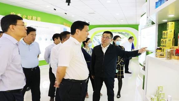 陳洪宛司長(zhǎng)一行首先進(jìn)入公司展廳進(jìn)行參觀,在展廳宣傳展板前駐足聽取了康海軍董事長(zhǎng)關(guān)于企業(yè)基本概況、發(fā)展歷程、改制上市等情況的匯報(bào)。隨后進(jìn)入產(chǎn)品展廳,詳細(xì)了解公司產(chǎn)品元胡止痛滴丸、鞣酸小檗堿膜、七味溫陽膠囊等4個(gè)全國(guó)獨(dú)家品種和其他普藥品種,以及保健食品黃芪當(dāng)歸膠囊?岛\姸麻L(zhǎng)還向陳洪宛司長(zhǎng)重點(diǎn)介紹了公司一期項(xiàng)目建設(shè)及二期項(xiàng)目總體規(guī)劃情況。