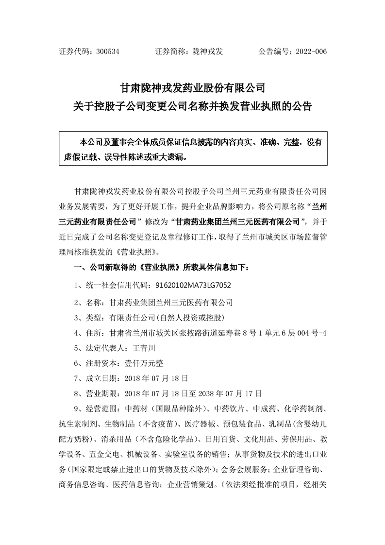 關(guān)于控股子公司變更公司名稱并換發(fā)營(yíng)業(yè)執(zhí)照的公告