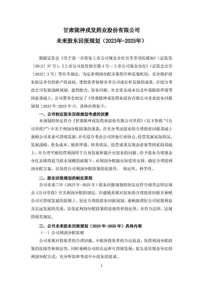未來股東回報(bào)規(guī)劃(2023年-2025年)