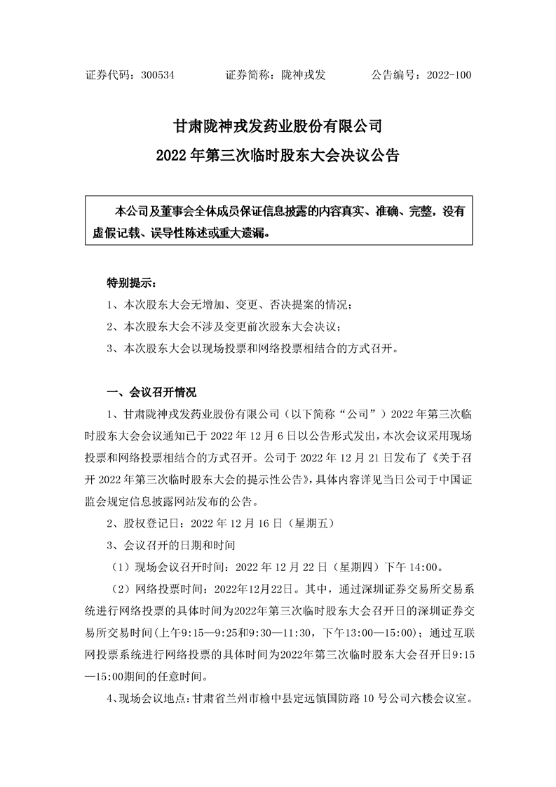 2022年第三次臨時(shí)股東大會(huì)決議公告